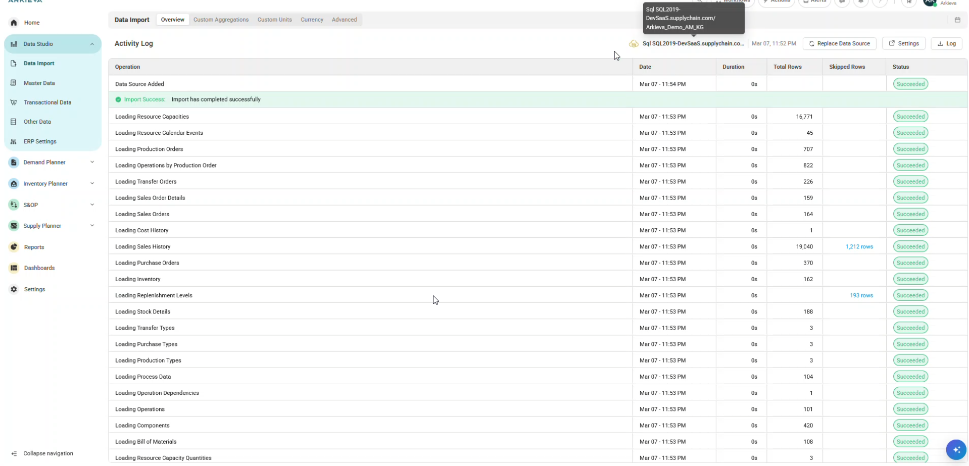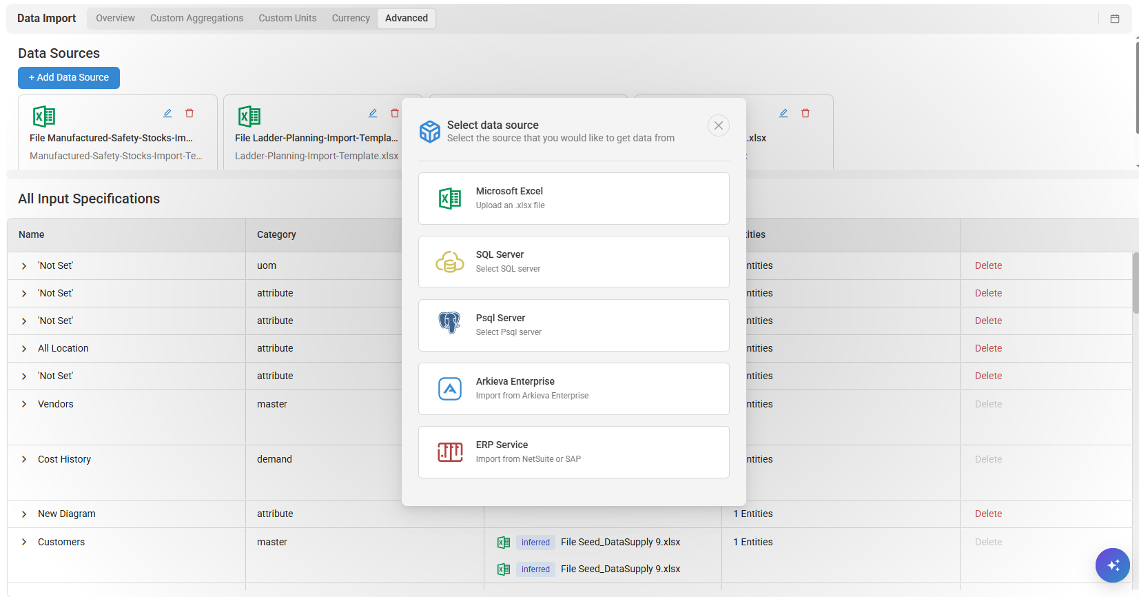 As a standard feature of Arkieva, you can import a SQL data source as a primary data source. However you can import an Enterprise data source as a secondary data source under the Advanced tab. Running an LP will still work as expected.
