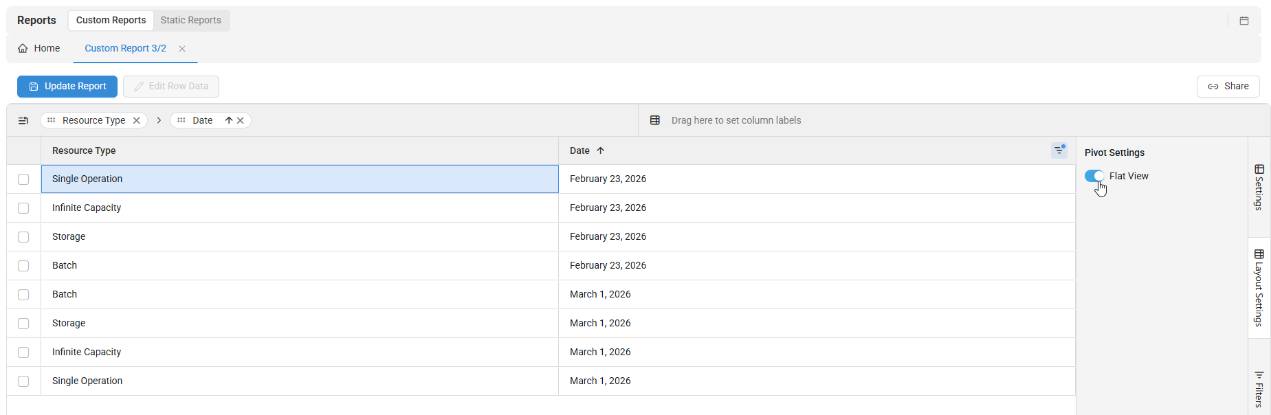 To view a flattened data set without any subtotal levels while maintaining the paging functionality, enable Pivot mode in Settings, then enable Flat View in the Pivot Settings under Layout Settings. A new option should be added to load the flattened data set without any subtotal levels while maintaining the paging functionality.