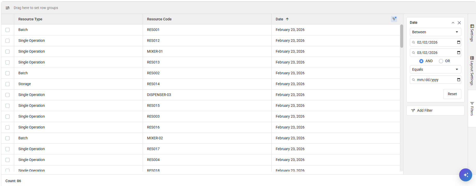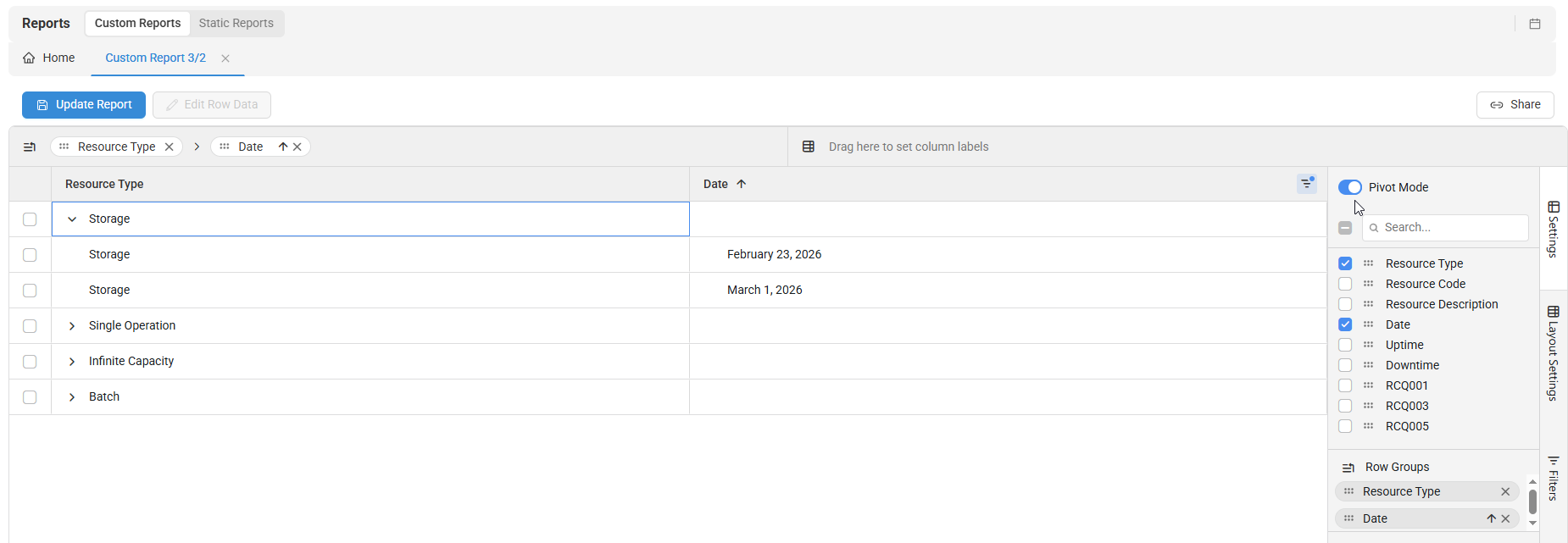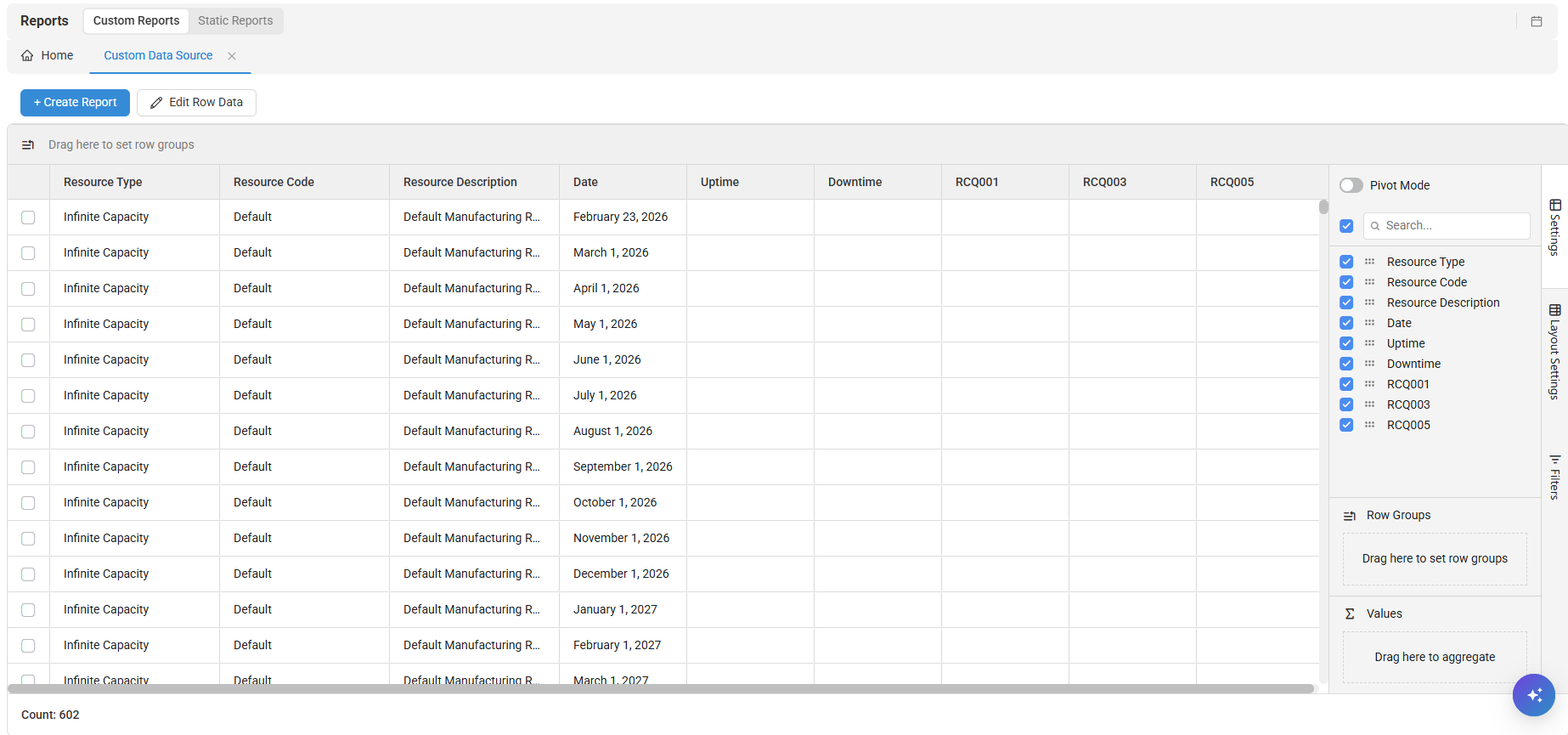 Right-click the Report grid to access the right-click menu.