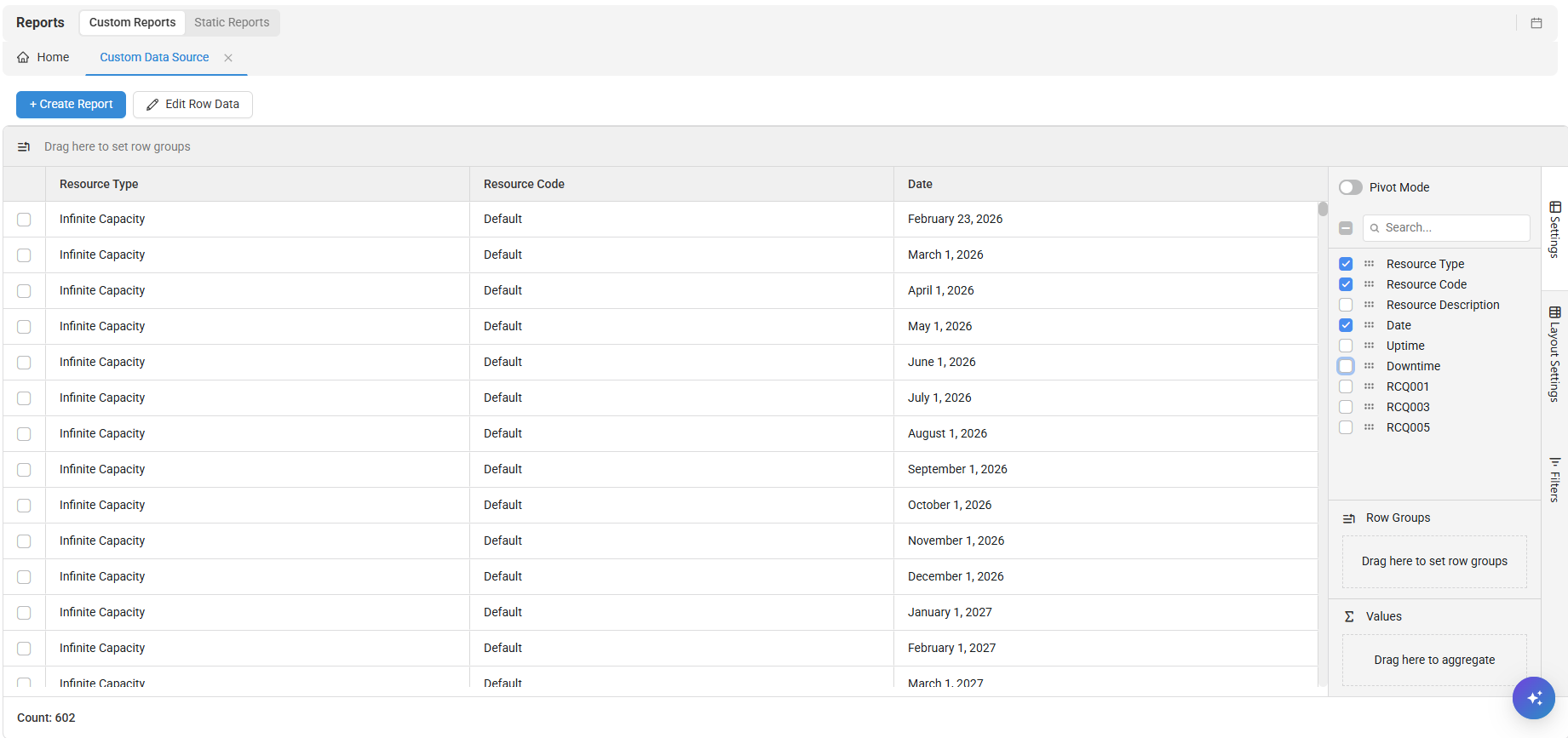 There is a 100000 limit to the creation of custom reports.