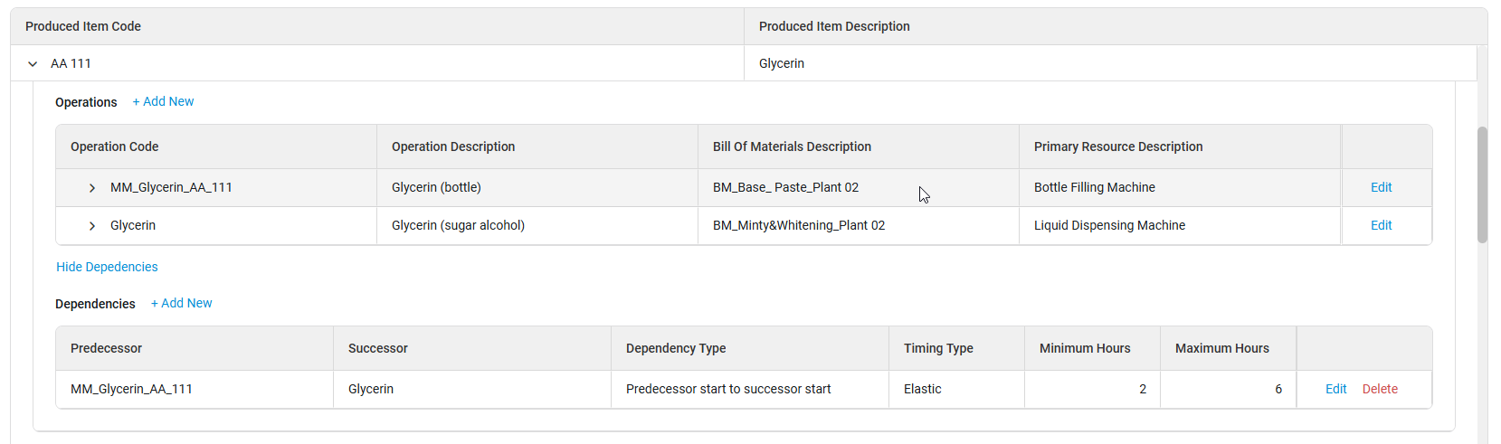 - Some Manufacturing Resources will also allow more than one Dependency to be added. The message 'Maximum dependencies reached' will appear to the right of the Add Dependency link button and the button will be grayed out when no more dependencies can be created for that resource.
